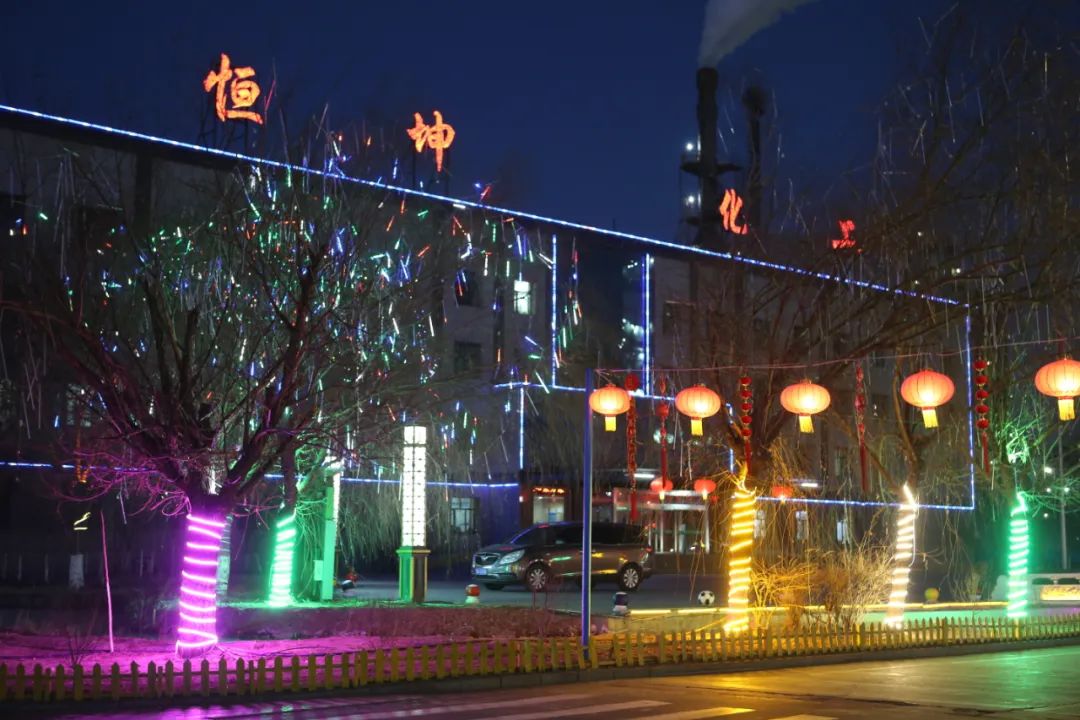 火树银花辞旧岁,流光溢彩迎新春。近日,恒坤化工挂上了各式各样的彩灯、灯笼,整个园区的“年味”顿时蔓延开来,到处呈现出一派喜庆洋洋的节日氛围。