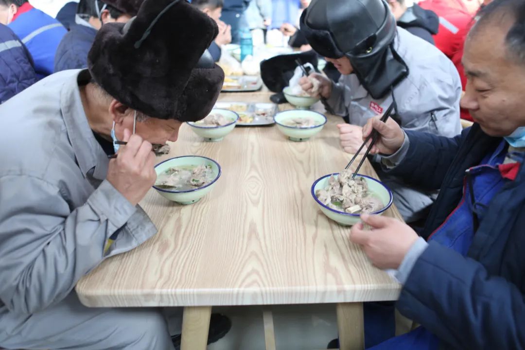 在新春佳节到来之际,为让留勤职工吃得好、吃得饱 ,恒坤化工为员工精心准备了免费的羊肉、羊汤、肉夹馍,丰盛的饭菜、香喷喷的味道,使食堂里洋溢着温馨、喜庆的节日气氛。