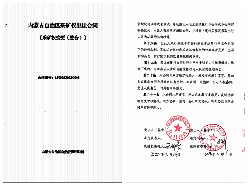 2月16日,长城一矿传来好消息,该矿与内蒙古自治区自然资源厅签订采矿权出让合同,有效破解了矿井手续办理瓶颈。
