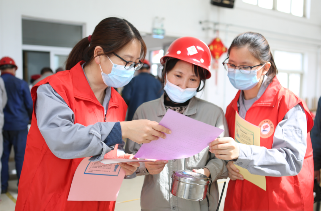 活动中,青年志愿者们围绕“疫情防控、光盘行动、低碳生活、加速减塑”,向职工发放并讲解疫情防控指南、禁塑宣传单、可降解塑料制品宣传单,让广大职工了解塑料制品对人体和环境的危害情况。