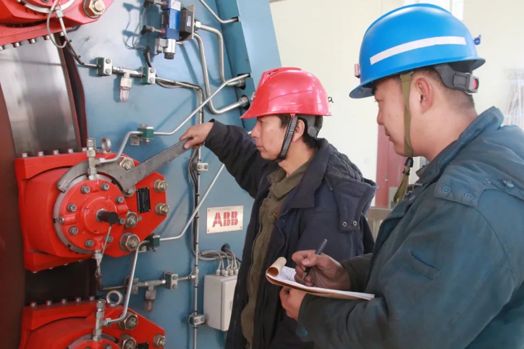 1月27日,长城六矿机运工区夏振木、张佳星巡检副井绞车房设备,为矿井运输、提升保驾护航。