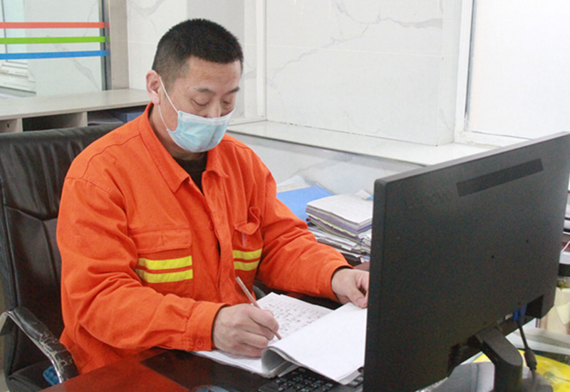 1月27日,长城三矿安全监察中心井口信息员张德海在整理当日井下安全隐患排查清单,确保矿井安全复工复产。